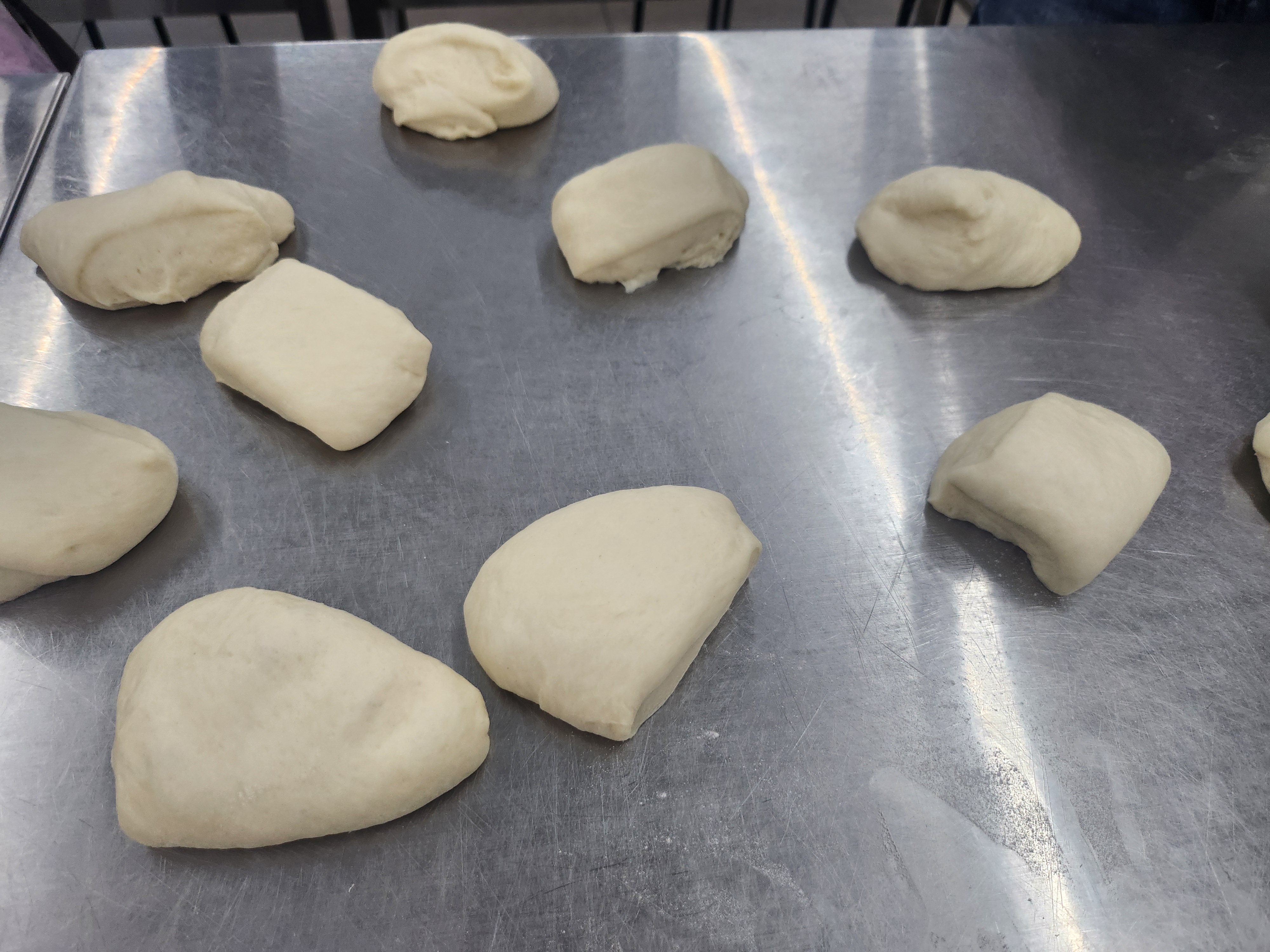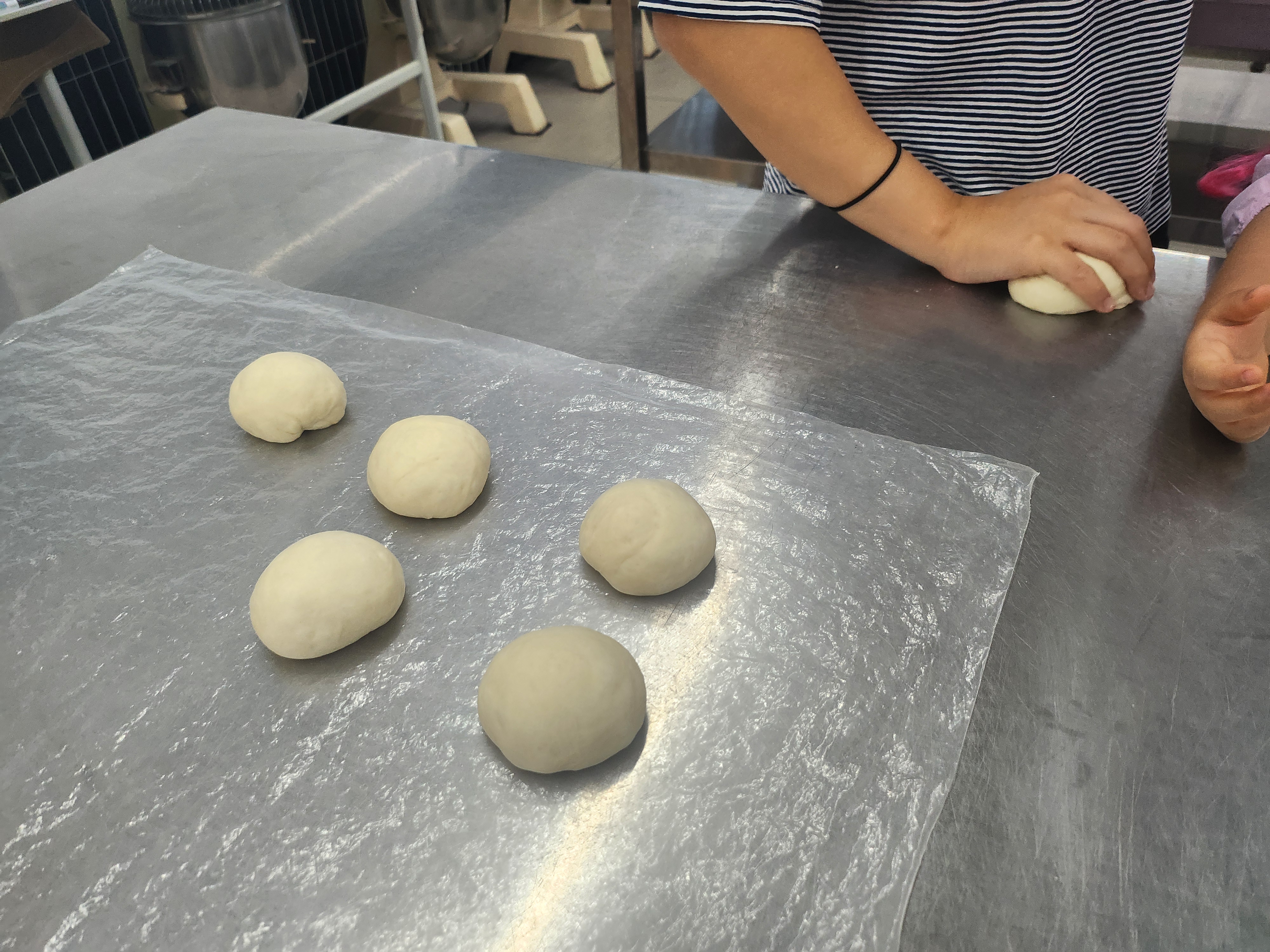 준비된 반죽을 분할한 뒤, 반죽의 표면이 매끈해지게 둥글리기를 해줍니다.