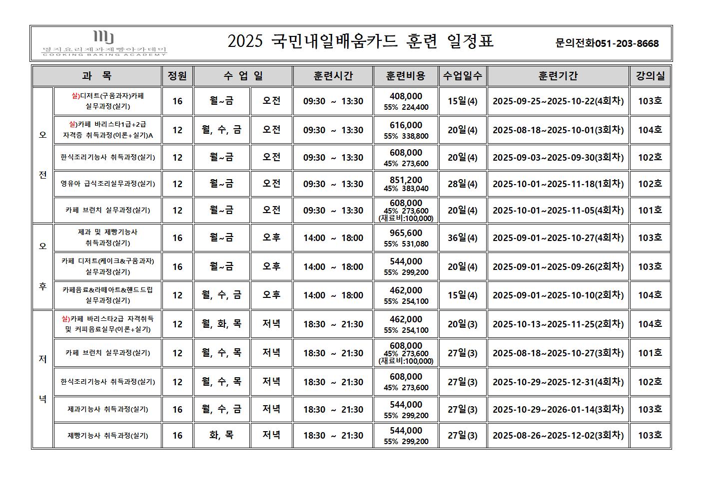'명지요리' 검색하시면 저희 학원에 수강 가능한 훈련일정목록이 나올거에요~