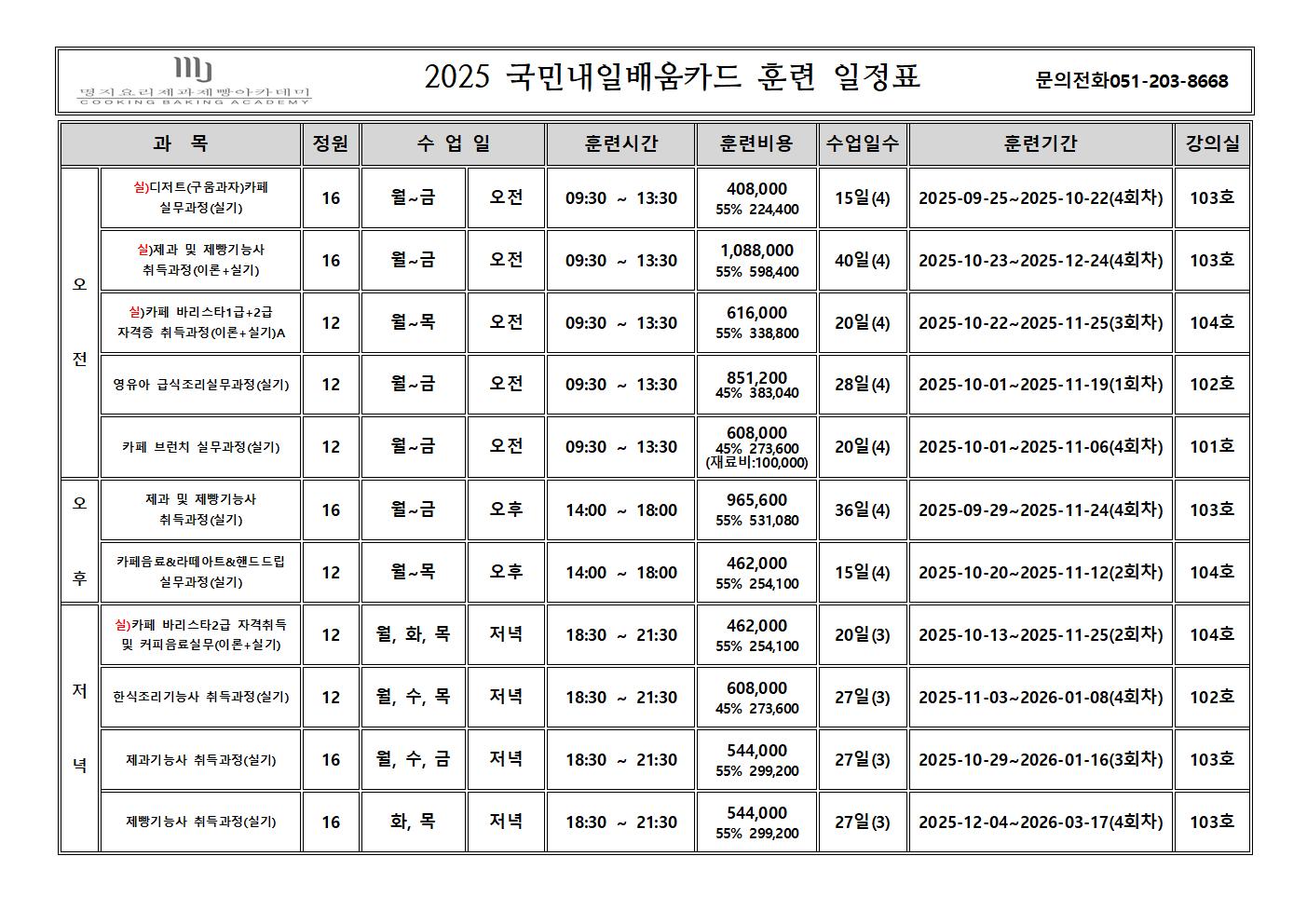 '명지요리' 검색하시면 저희 학원에 수강 가능한 훈련일정목록이 나올거에요~