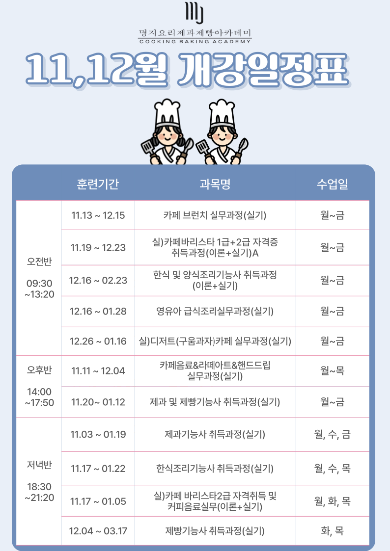 11, 12월 개강 예정인 과목들을 안내해드립니다.