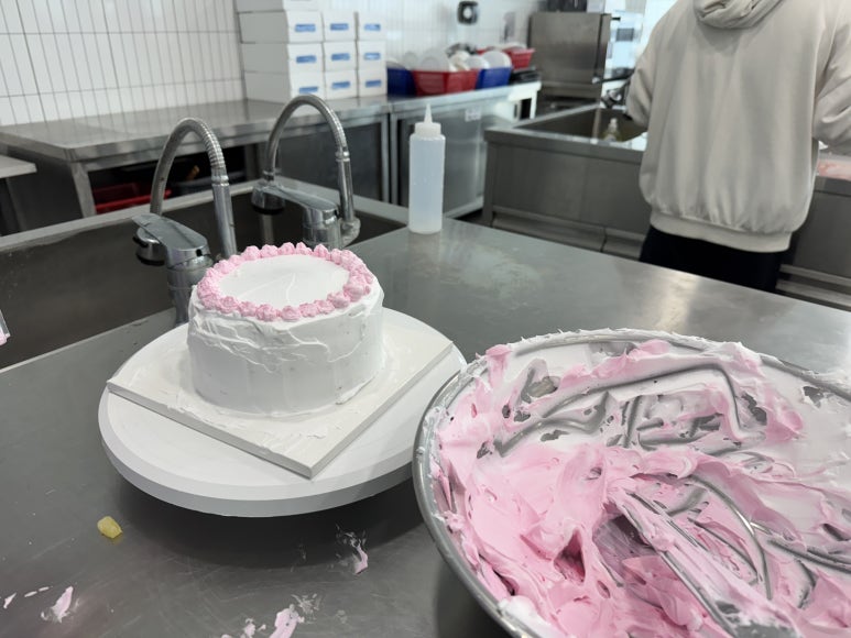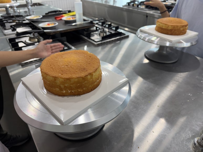 각자 받은 케이크 시트를 잘라보는 것부터 시작해봅니다.