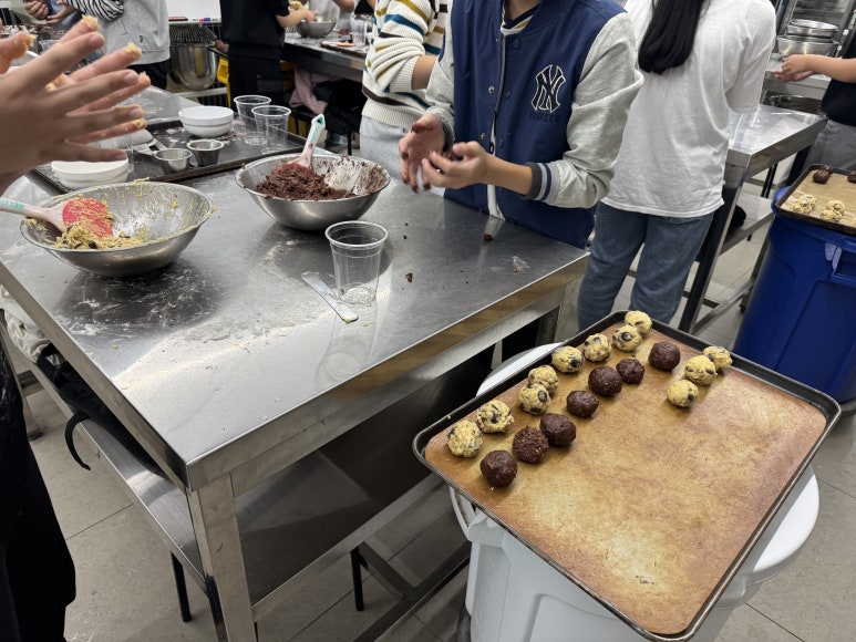 오늘의 메뉴는 르뱅쿠키와 케이크 만들기, 두 팀으로 나누어 진행하였습니다.
