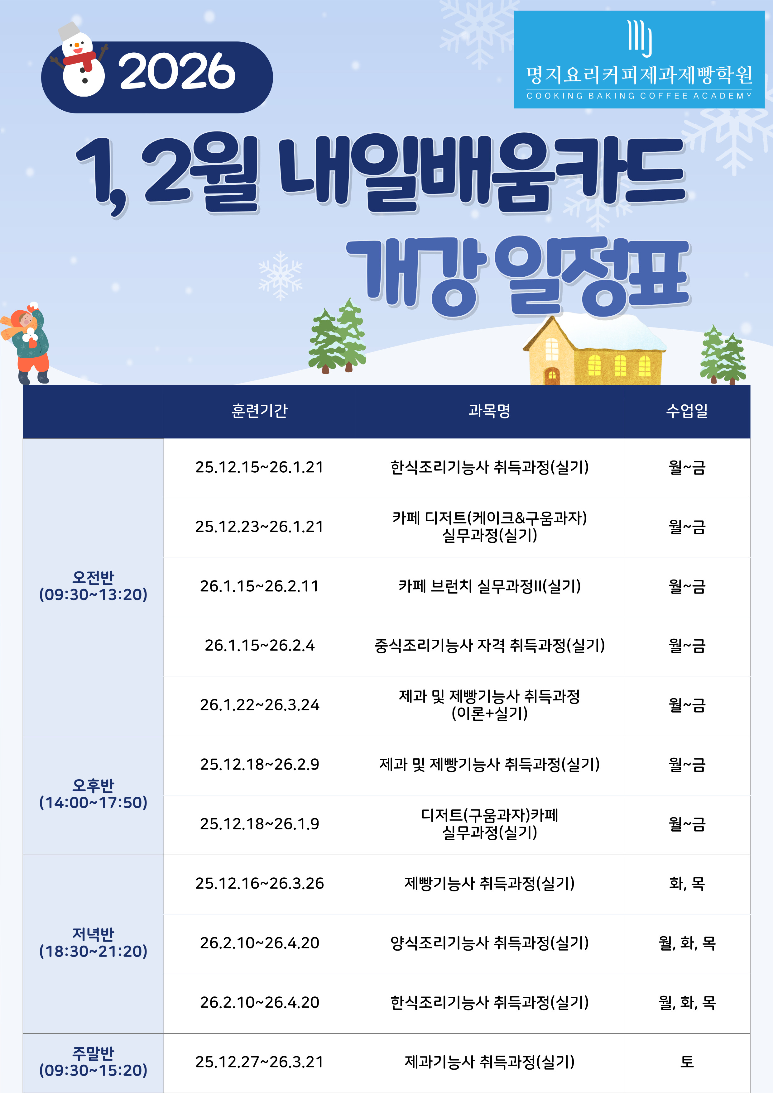 2026년 1,2월 내일배움카드 개강일정표